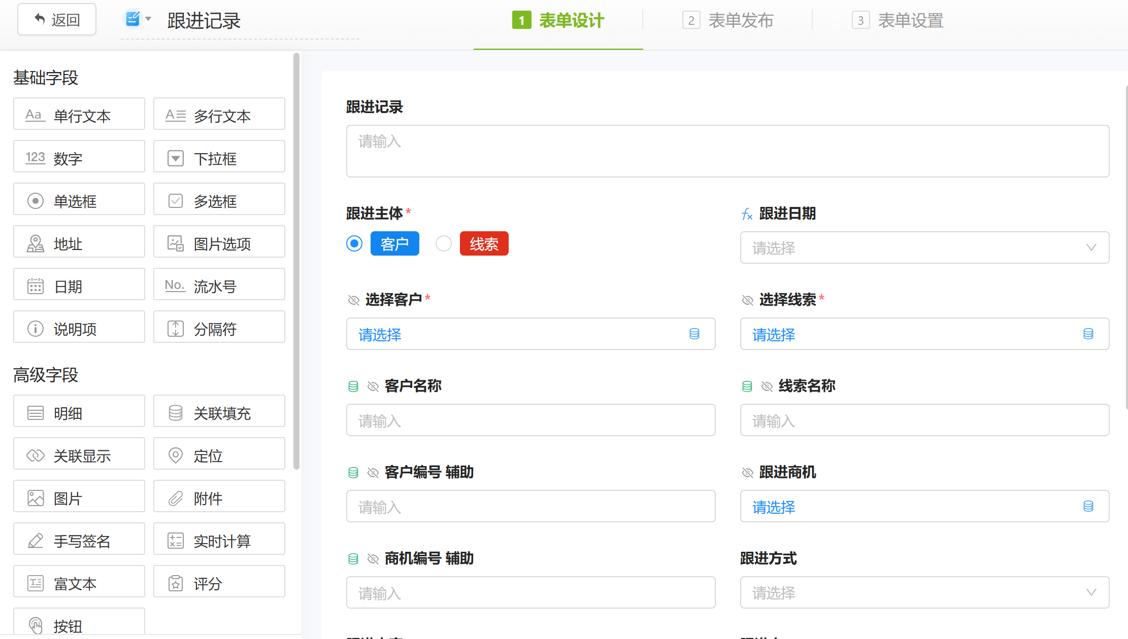 - 控件丰富,涵盖单行文本、日期、成员、部门等基础字段,以及明细、关联等高级控件。