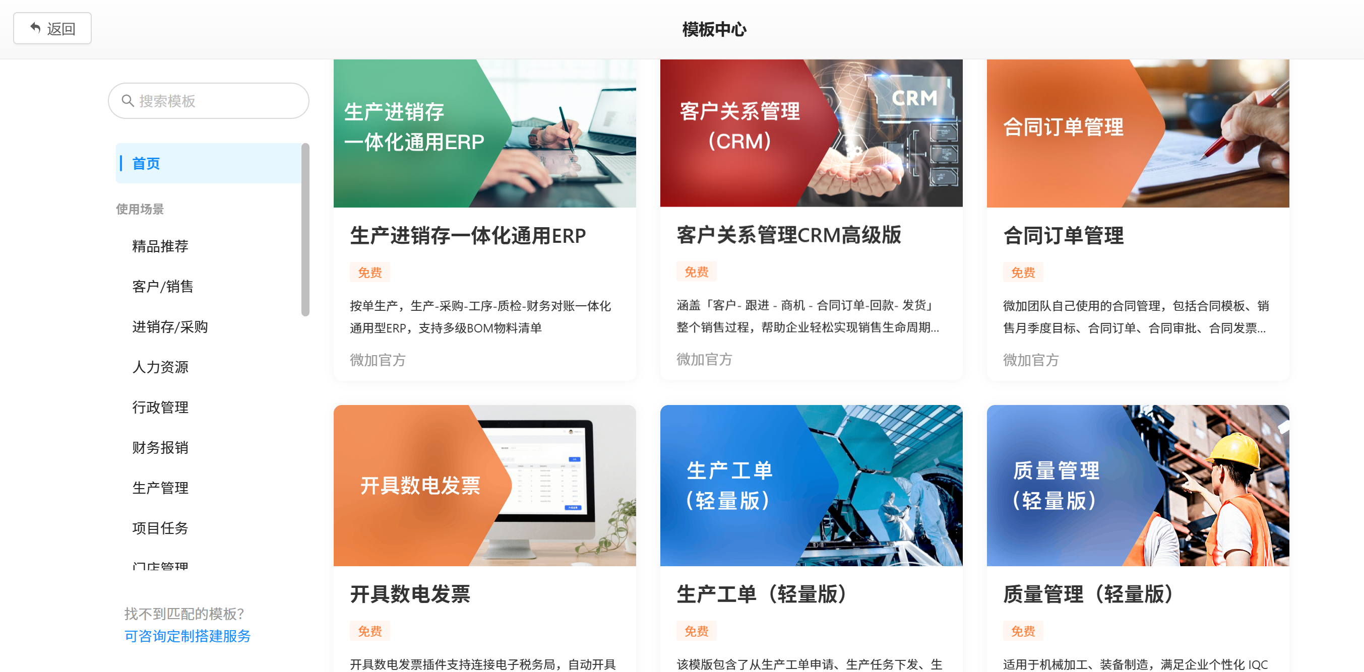 利用海量模板快速启动:平台提供了覆盖人力资源、行政办公、财务报销、进销存、CRM等场景的模板。决策者可一键引用,快速验证流程,几乎零成本启动数字化。