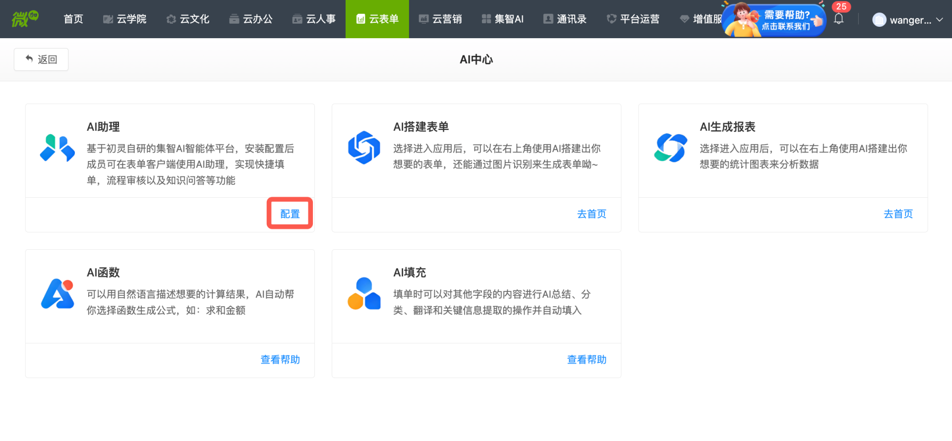 从AI助理点击“配置”可直接跳转到“集智AI”。