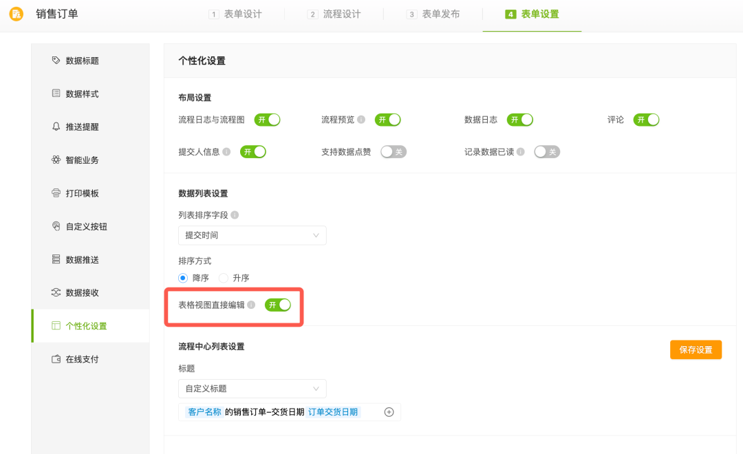 注意:默认关闭,且仅支持PC客户端的表格类视图的快捷编辑。