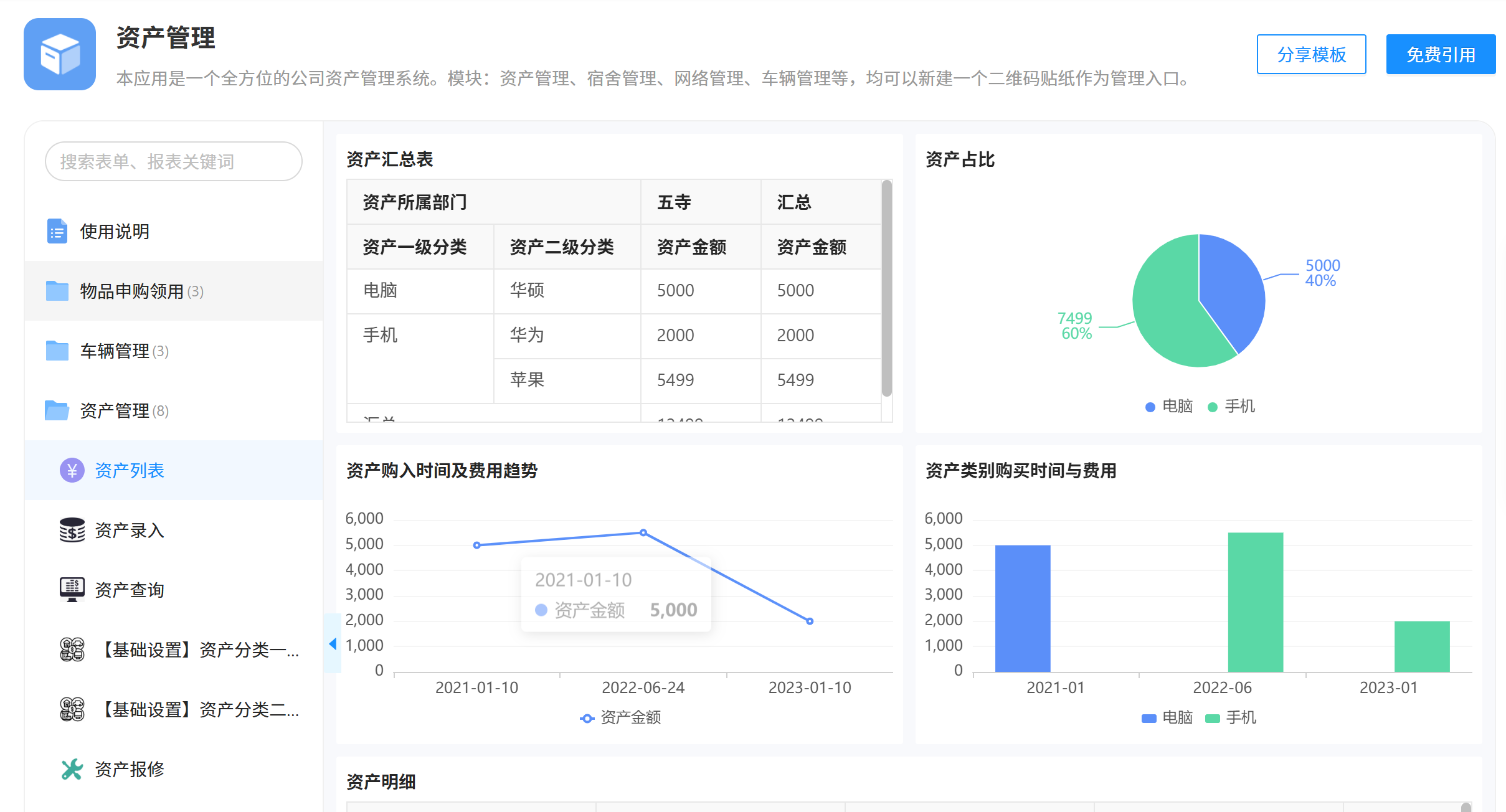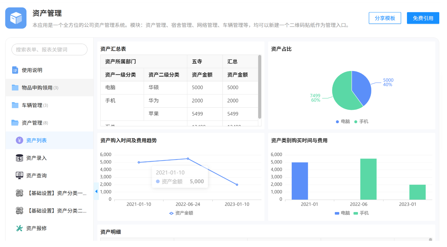 它和传统固化的资产管理软件不一样,本质是面向全行业企业的个性化应用搭建平台,完全贴合小微企业轻量化管控的需求。